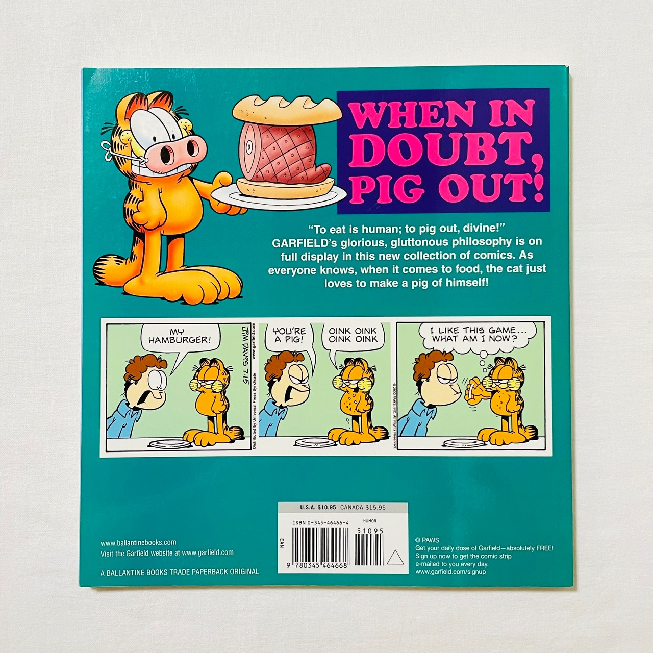 ガーフィールドのコミック、"GARFIELD PIGS OUT"。