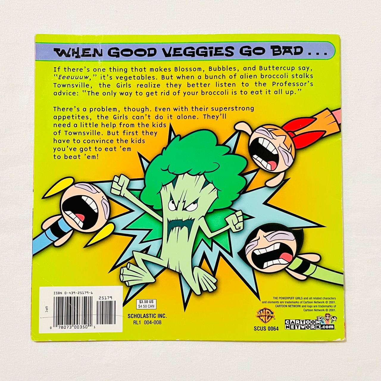 再入荷♪ THE POWERPUFF GIRLS "BEAT YOUR GREENS" パワーパフガールズ 中古洋書絵本 2001年 カートゥーンネットワーク スカラスティック