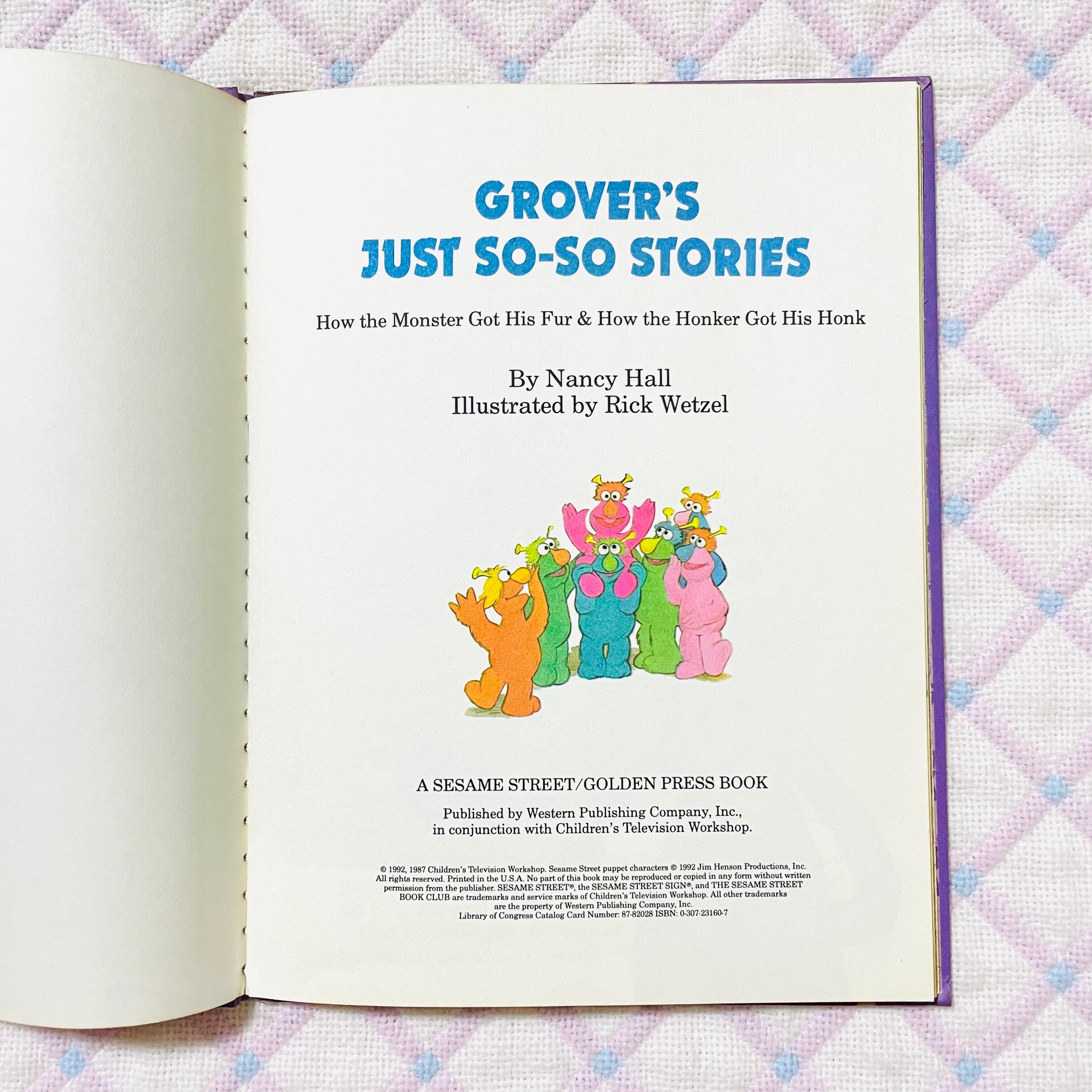 "GROVER'S JUST SO-SO STORIES" グローバーのなんて事ないお話 中古洋書絵本 1992年 セサミストリート ジムヘンソン ヴィンテージ