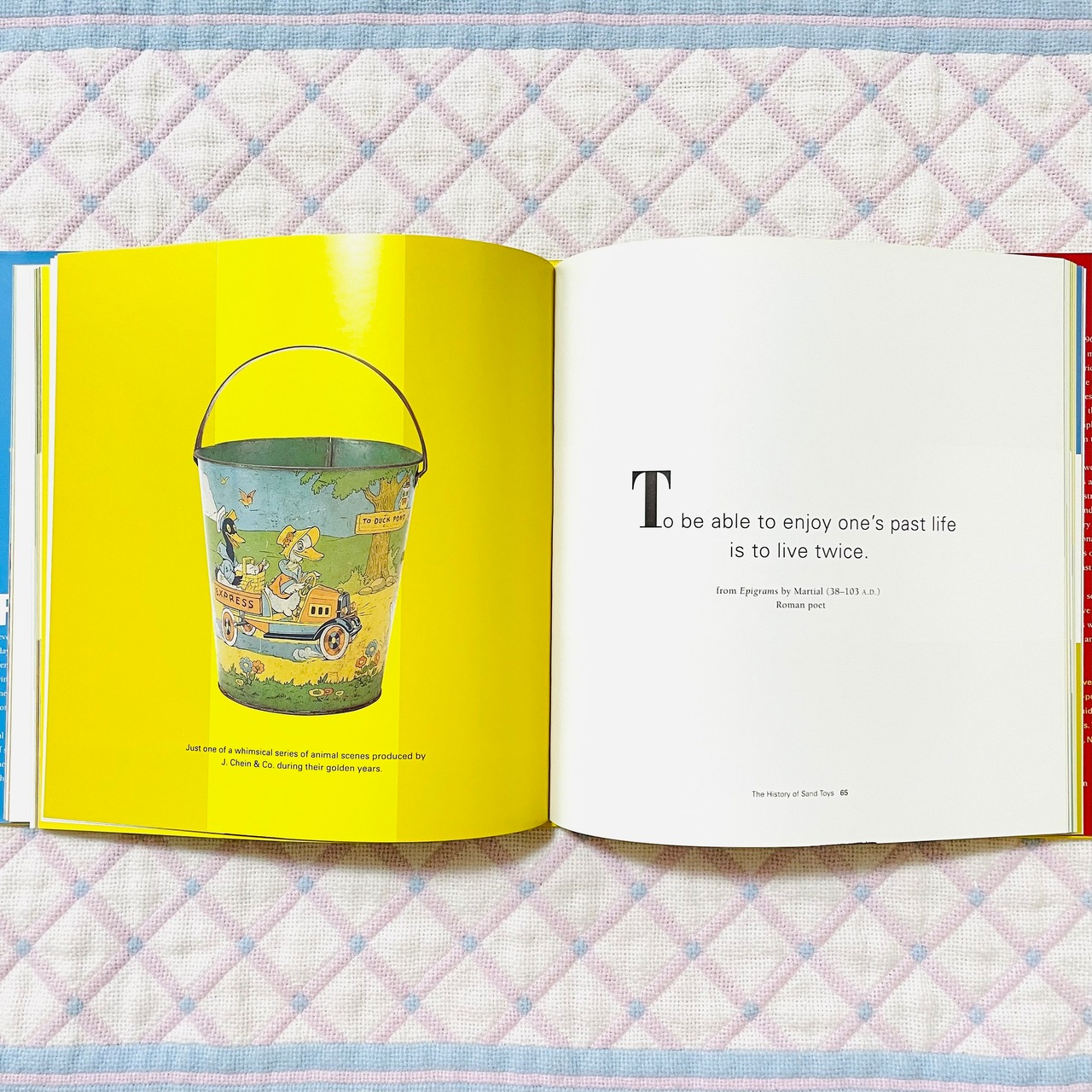 ヴィンテージの可愛いビーチ・ペールの写真と、作家、詩人、画家などの著名人が残した夏の思い出の名言とが組み合わされた、どこかノスタルジックな一冊です。