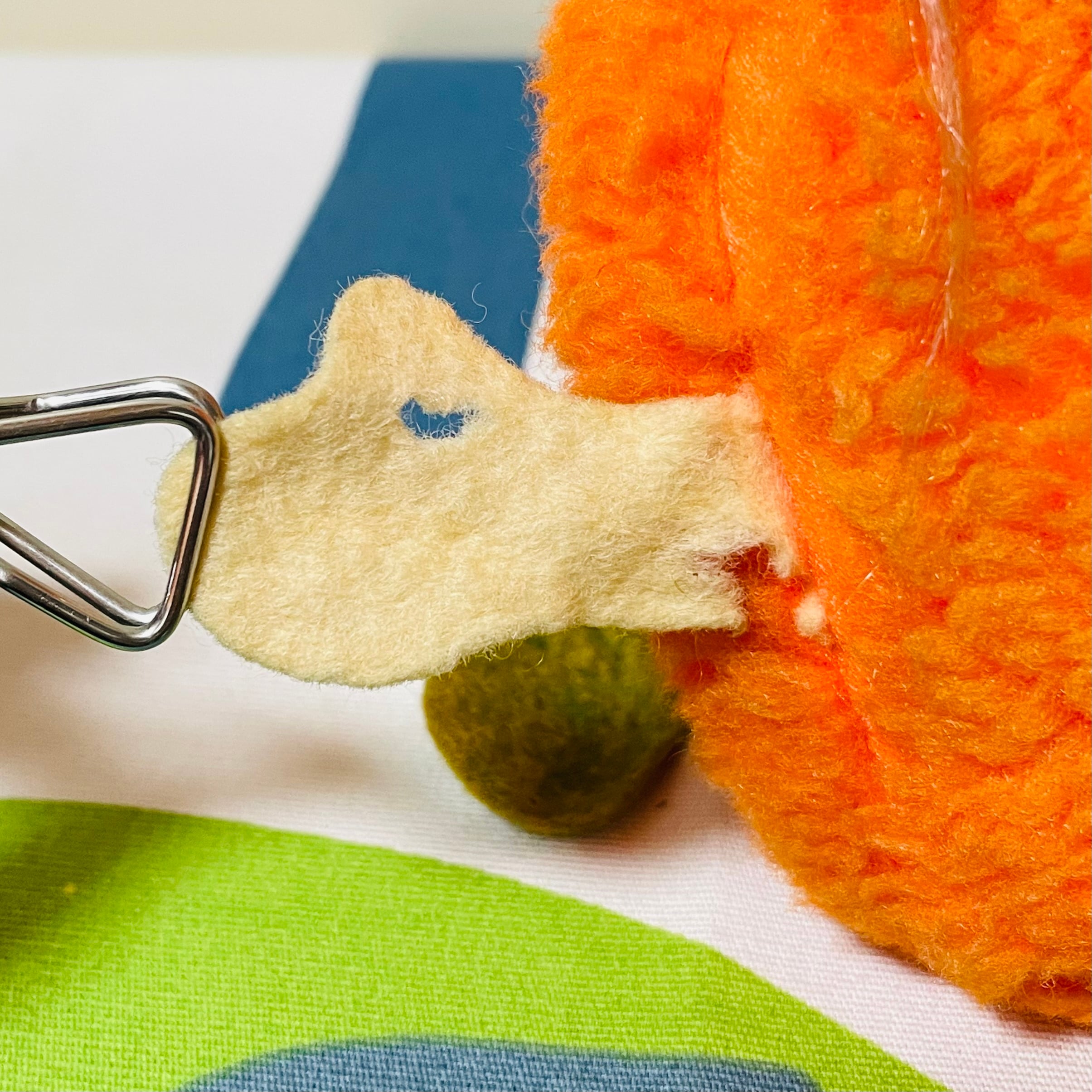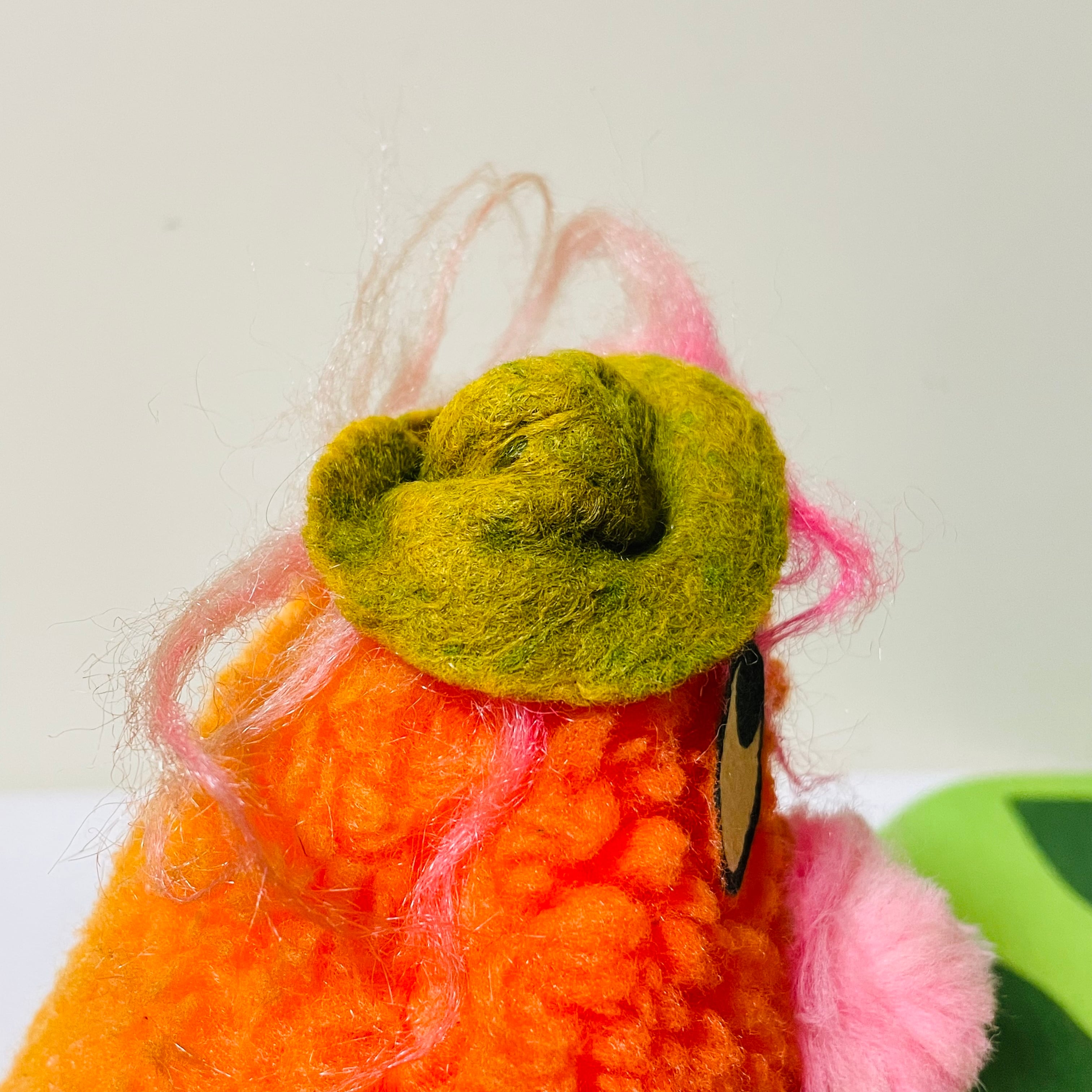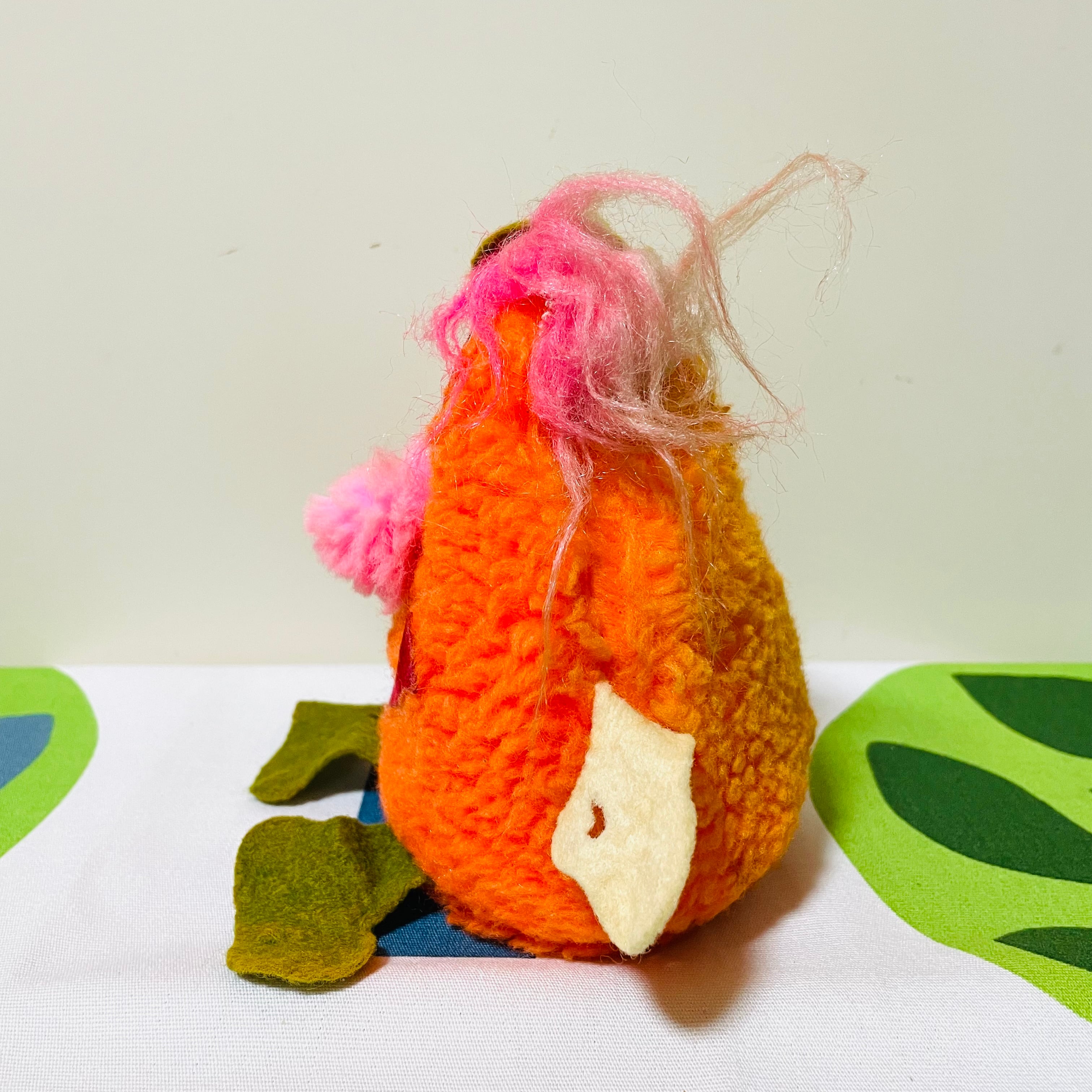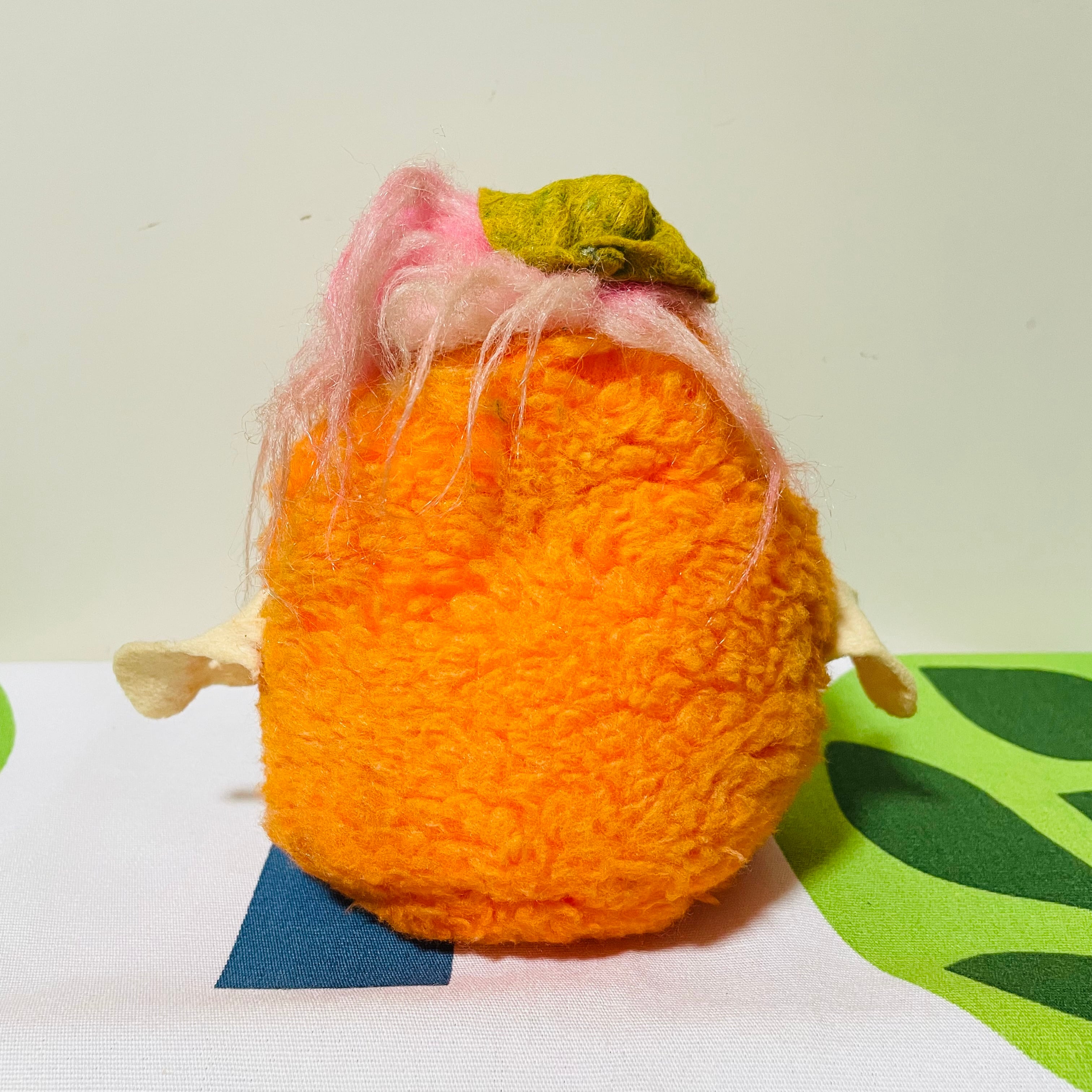 フェルト製の手、足、帽子には黄ばみ、色褪せ、シワが見られます。