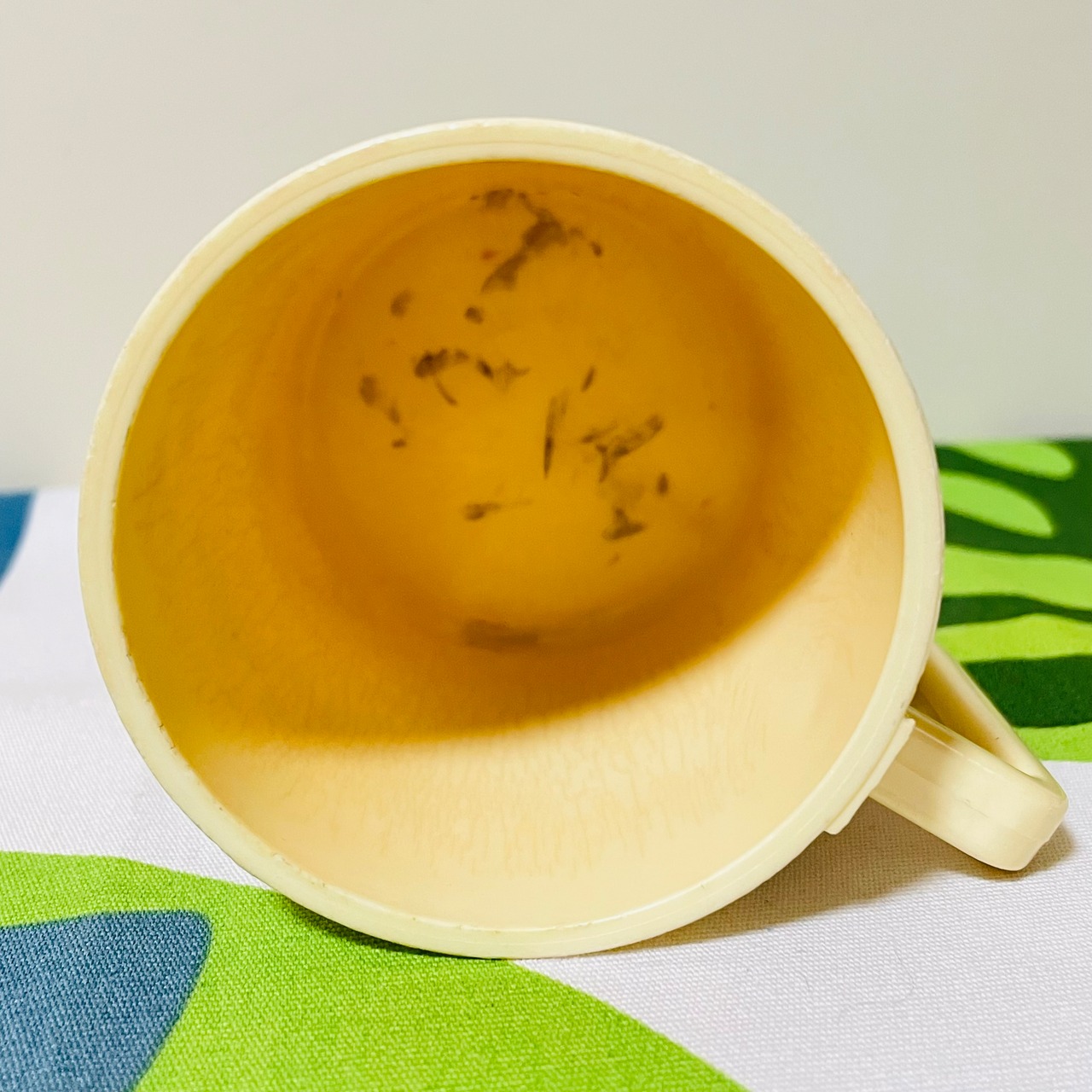 全体的に黄ばんでおり、底の方に細かい欠け、削れがあります。