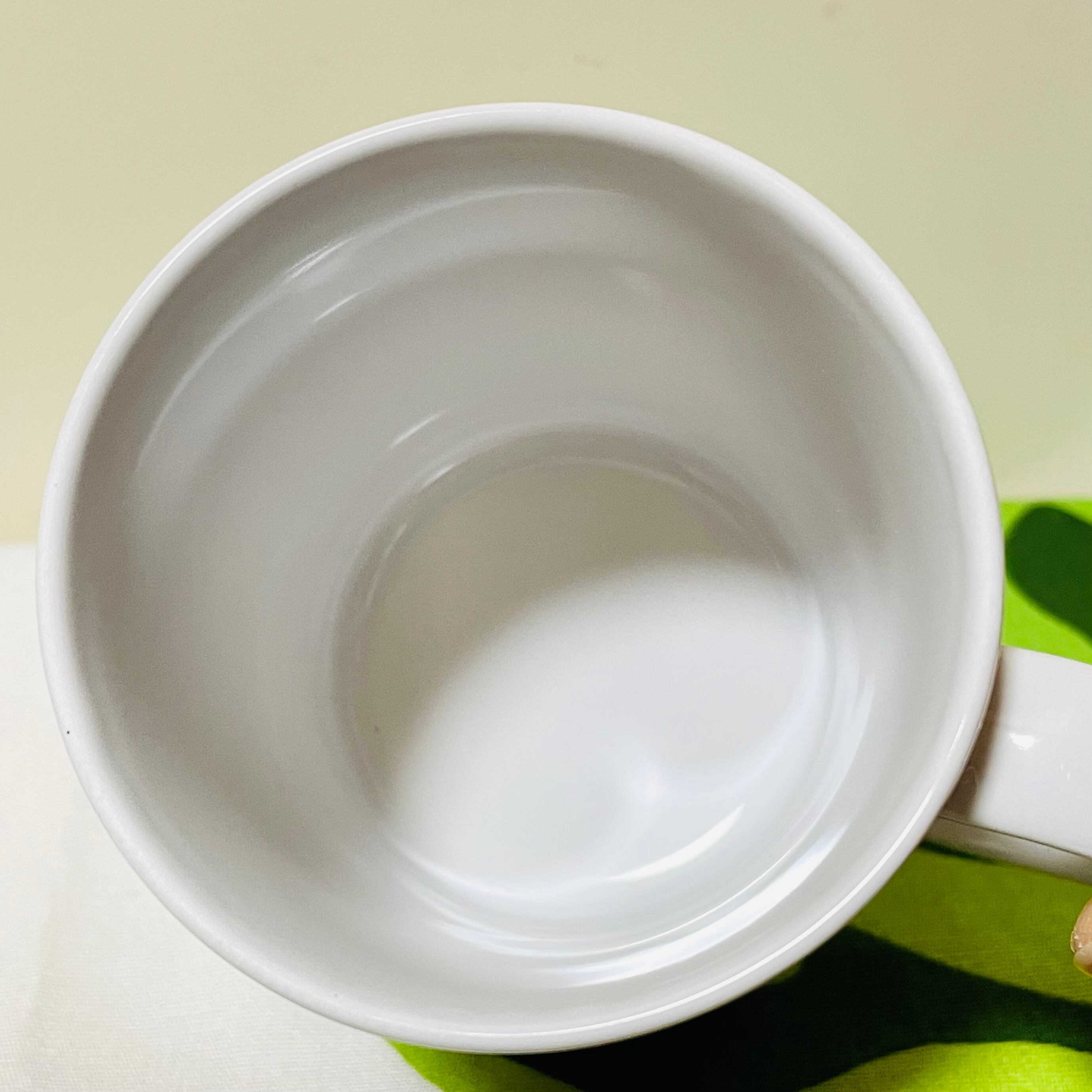 飲み口辺りに、一点の釉薬の気泡跡の小さなへこみがあります。