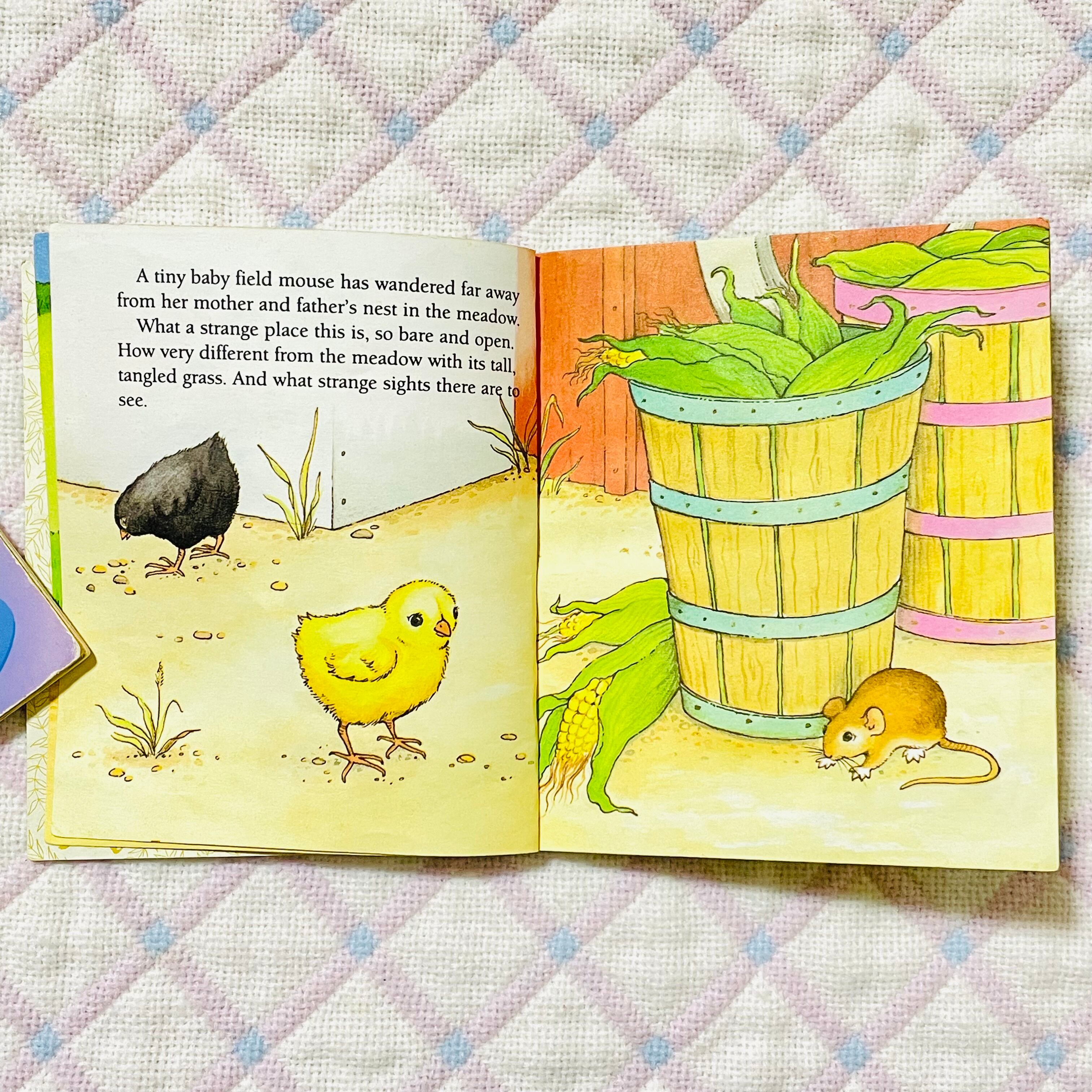 とある牧場に迷い込んだ野ネズミの子。見たこともない動物たちに興味津々です。ヒヨコ、子豚、子牛、子羊など、可愛い家畜動物の子どもたちが沢山登場します。