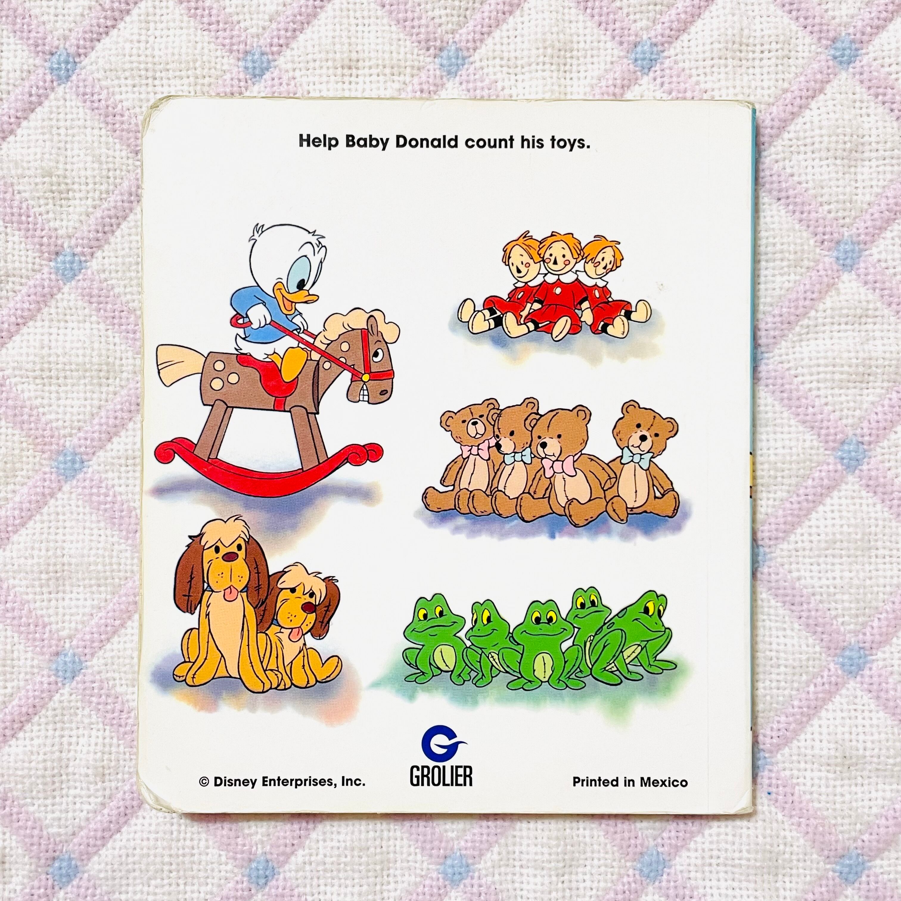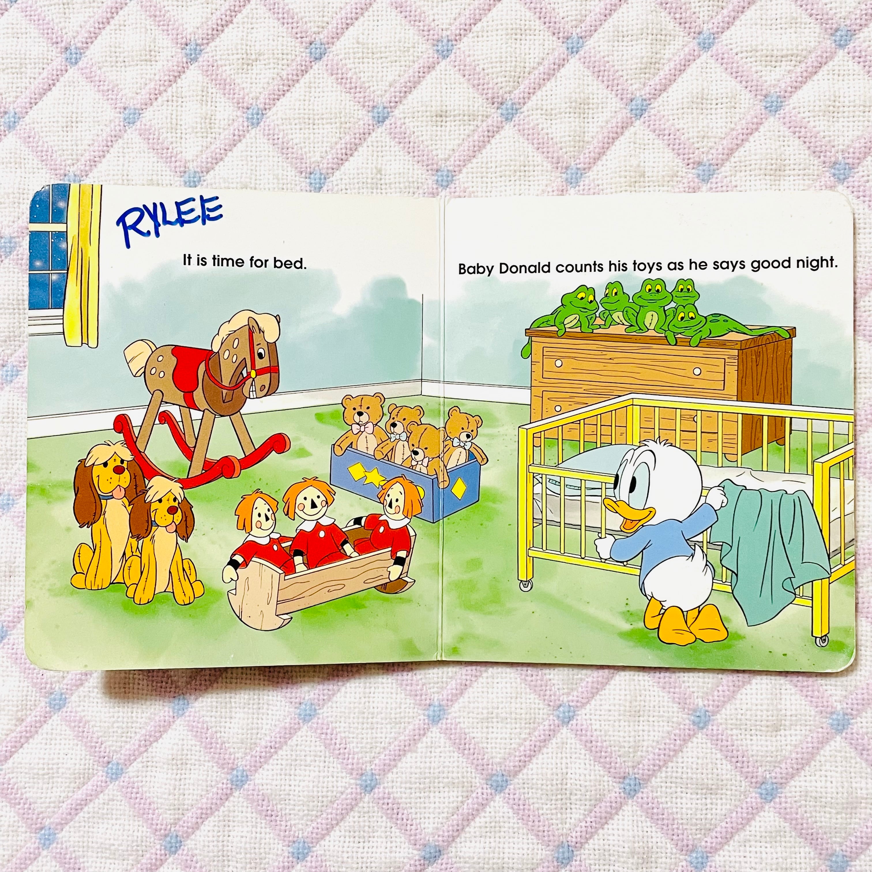 ベビー・ドナルドは、ベッドに入る前に大好きなオモチャたちの数を数えてみんなにおやすみなさいを言います。