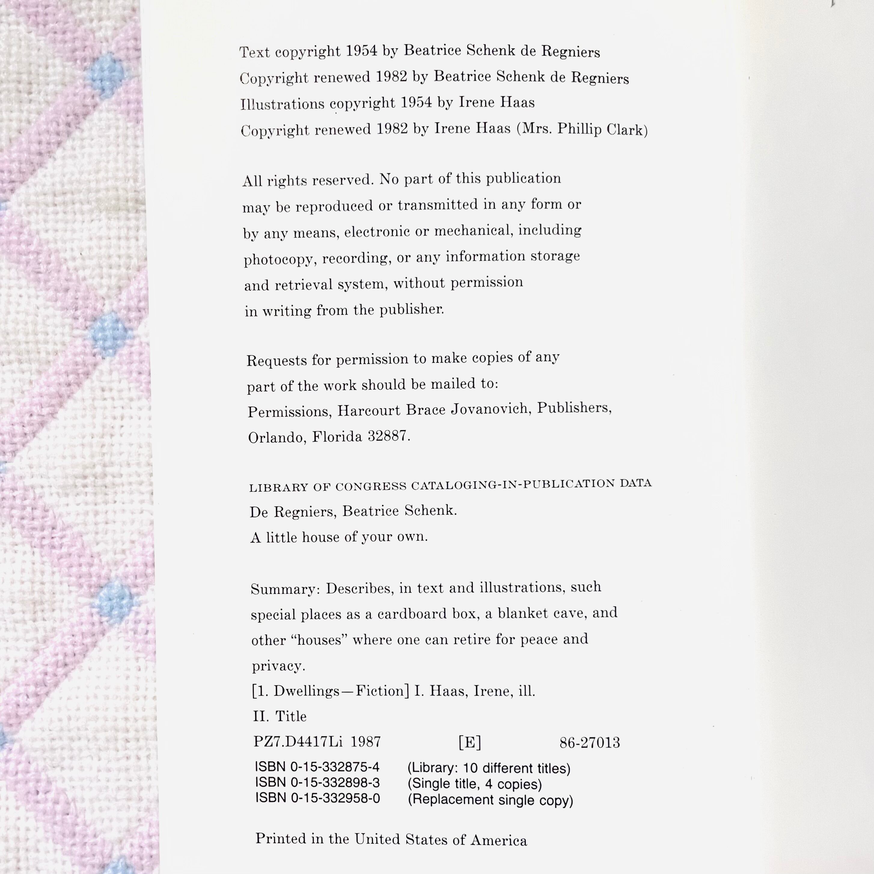 Copyright renewed 1982 by Irene Haas