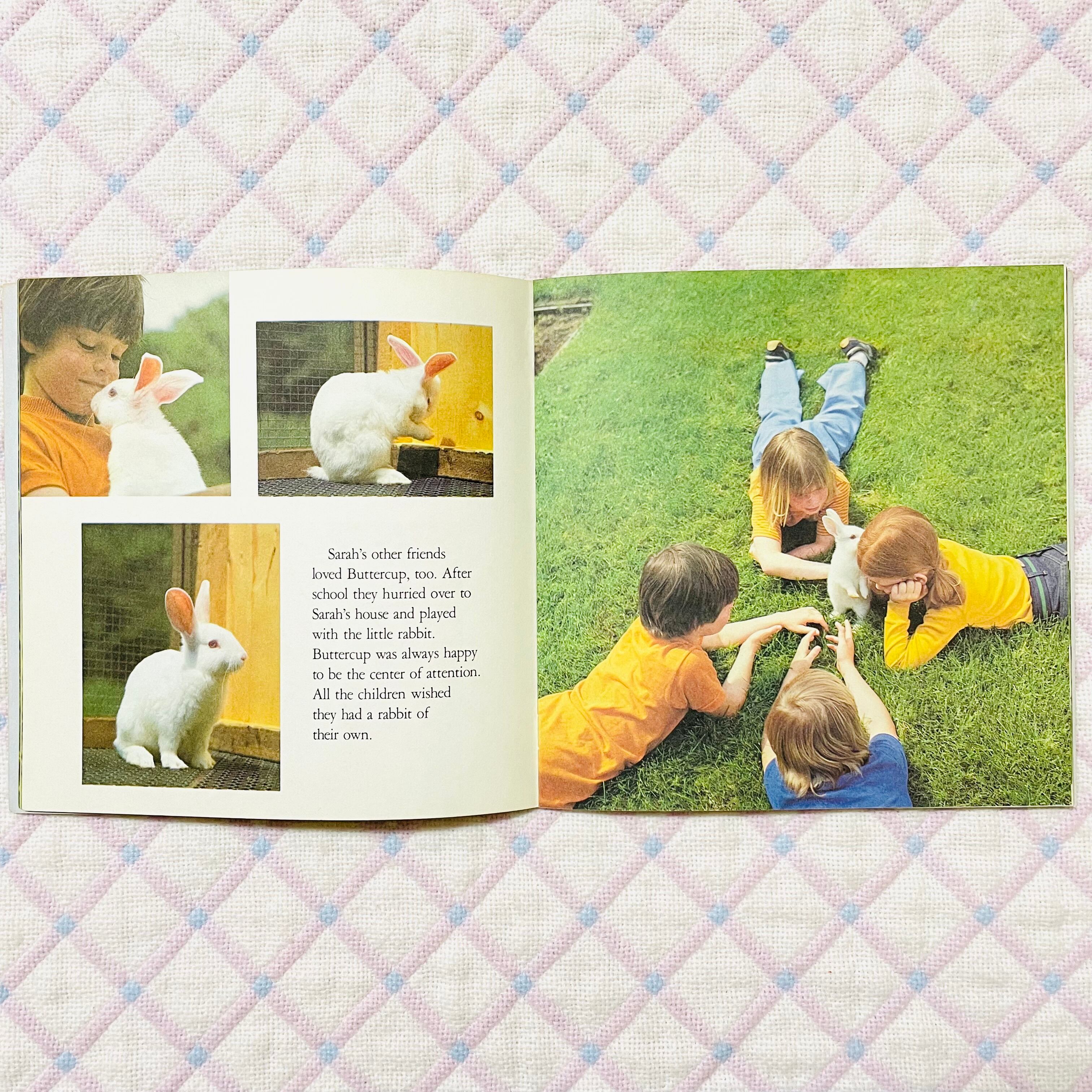 サラは、イースターの日にバスケットに入った小さなウサギを見つけました。白くて、ピンクの目と長くてピンクの耳。バターカップと名付けてお世話をする事にしました。