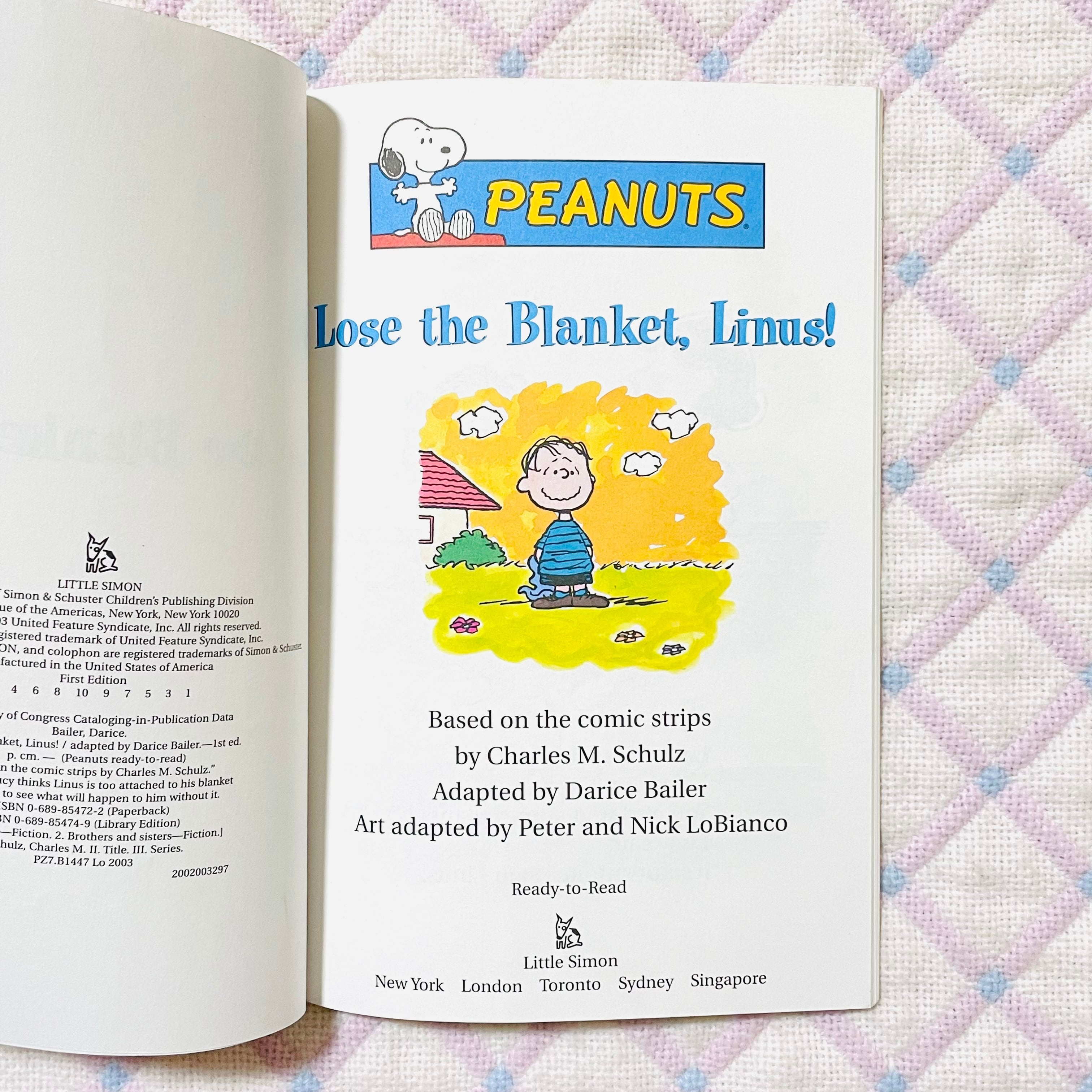 PEANUTS "LOSE A BLANKET,LINUS!" 毛布を手放しなさい、ライナス、 中古洋書絵本 2003年 スヌーピー サイモン