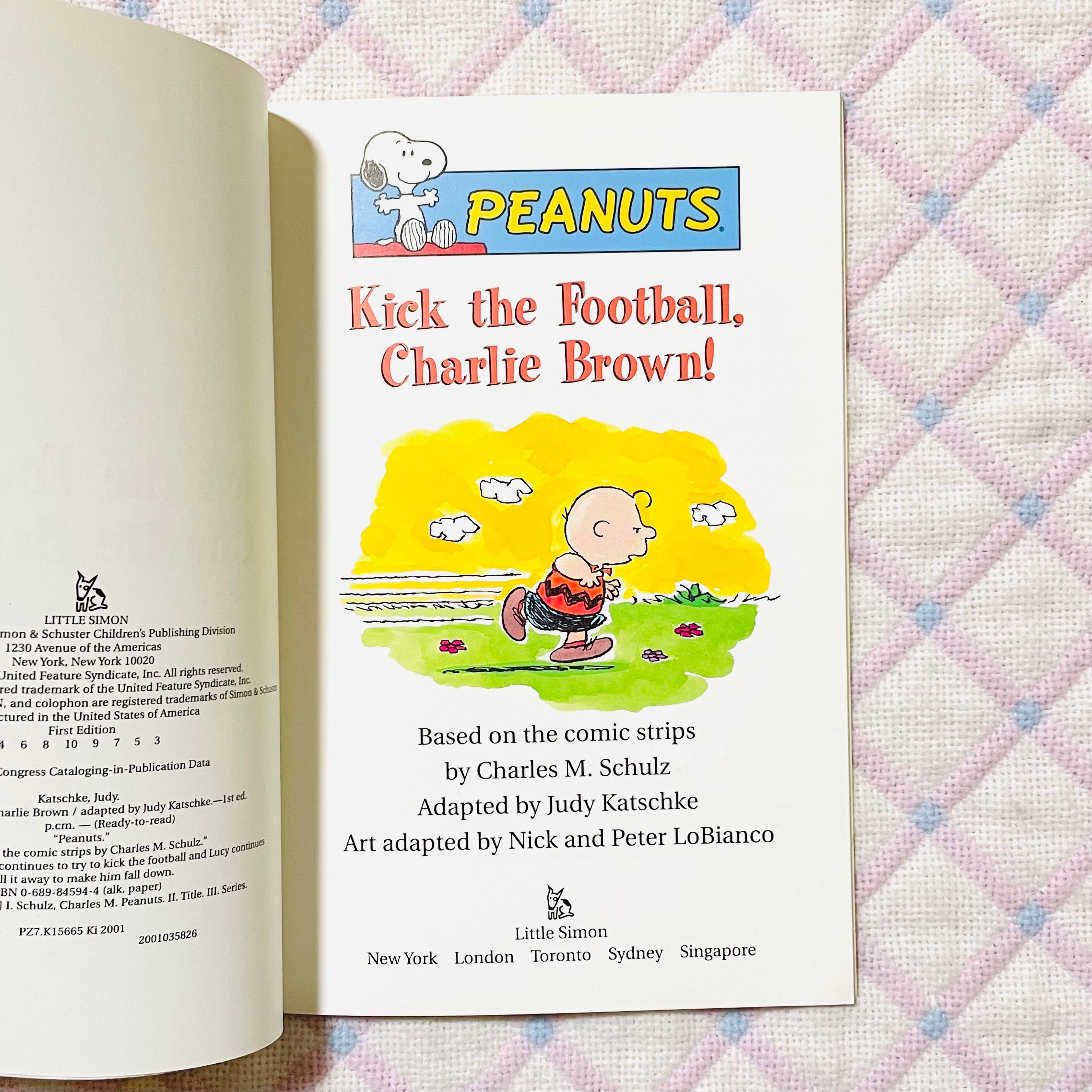 PEANUTS "KICK THE FOOTBALL,CHARLIE BROWN!" フットボールを蹴って、チャーリーブラウン 中古洋書絵本 2000年代 スヌーピー サイモン