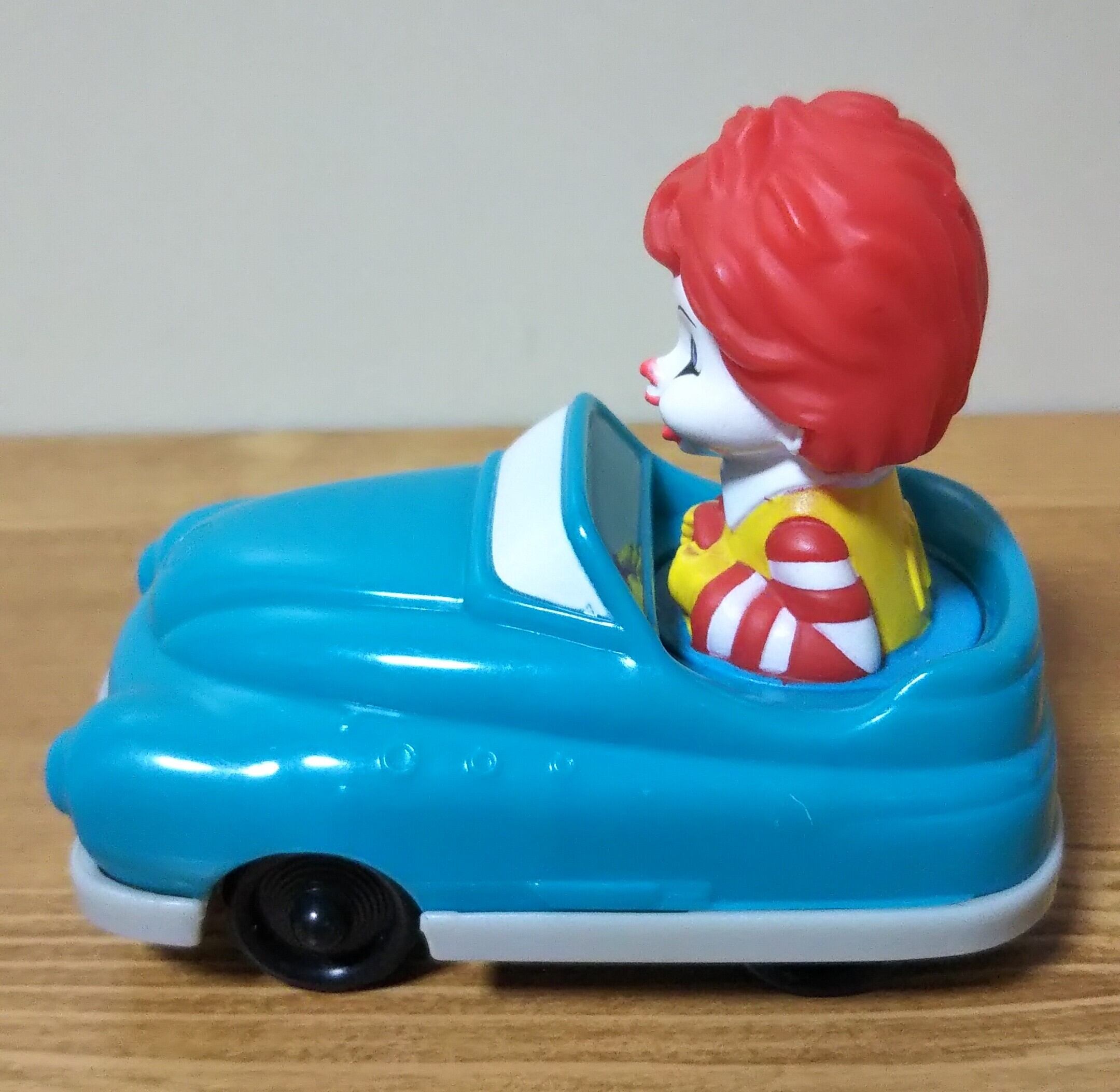 アメリカのマクドナルドの、水色のオープンカーに乗ったベイビー・ロナルドのミニカー。