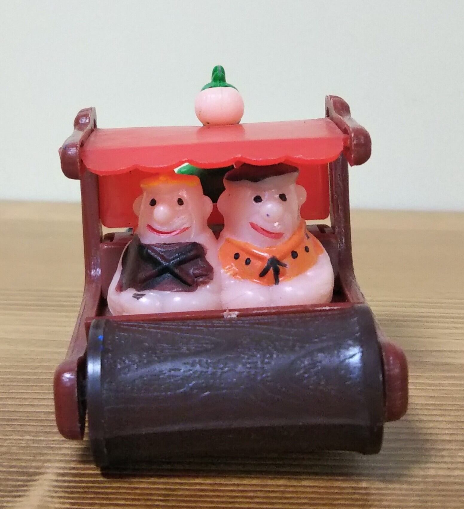 FRED,BARNEY & DINO ON FLINTMOBILE フリントモービルに乗ったフレッド,バーニーとディノ ミニカー 赤 1975年 FLNTSTONESフリントストーンズ 原始家族 HANNA-BARBERA ヴィンテージ