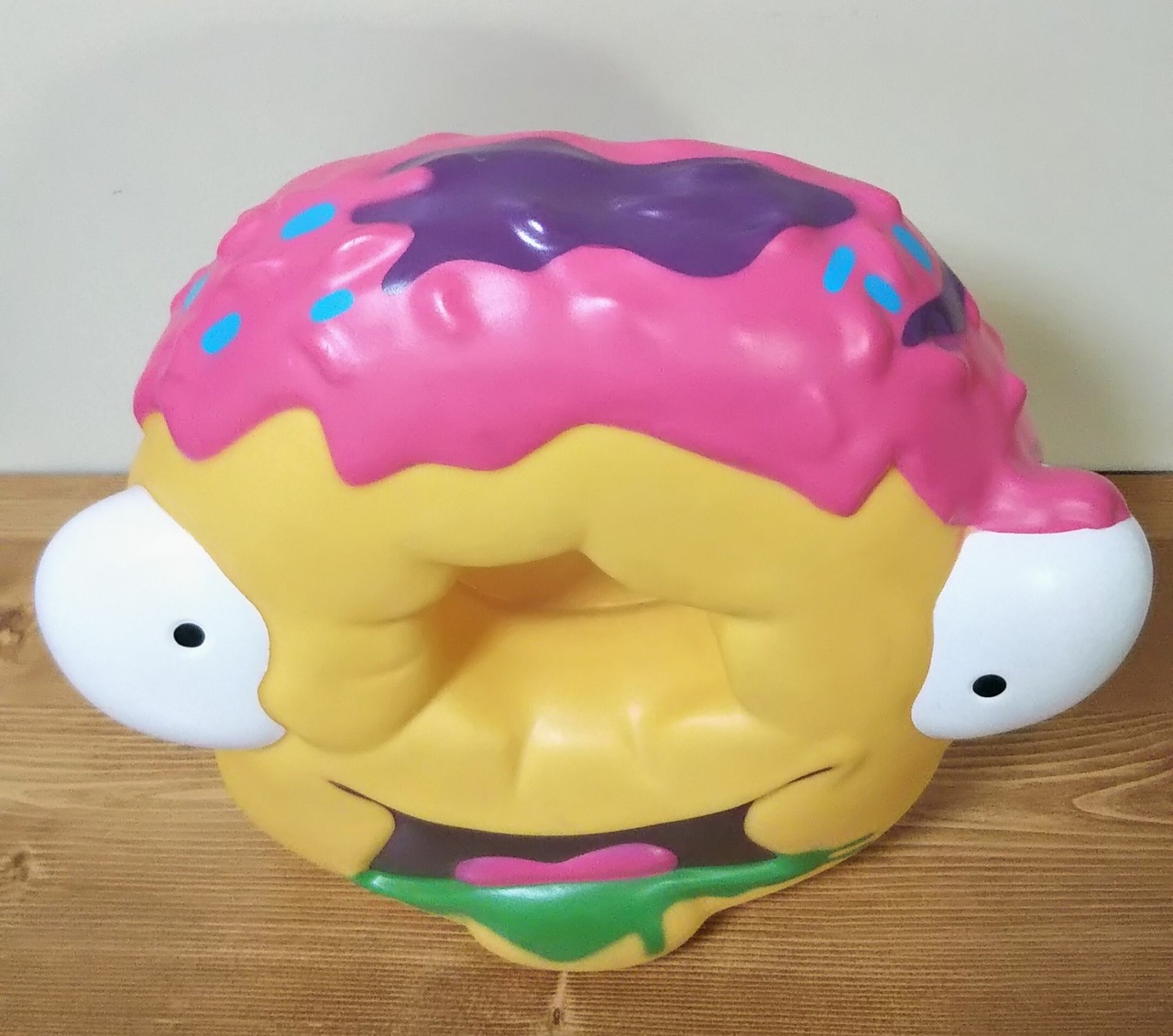 グロサリー・ギャングのキャラクター、ドッジー・ドーナツのソフビクッショントイ。