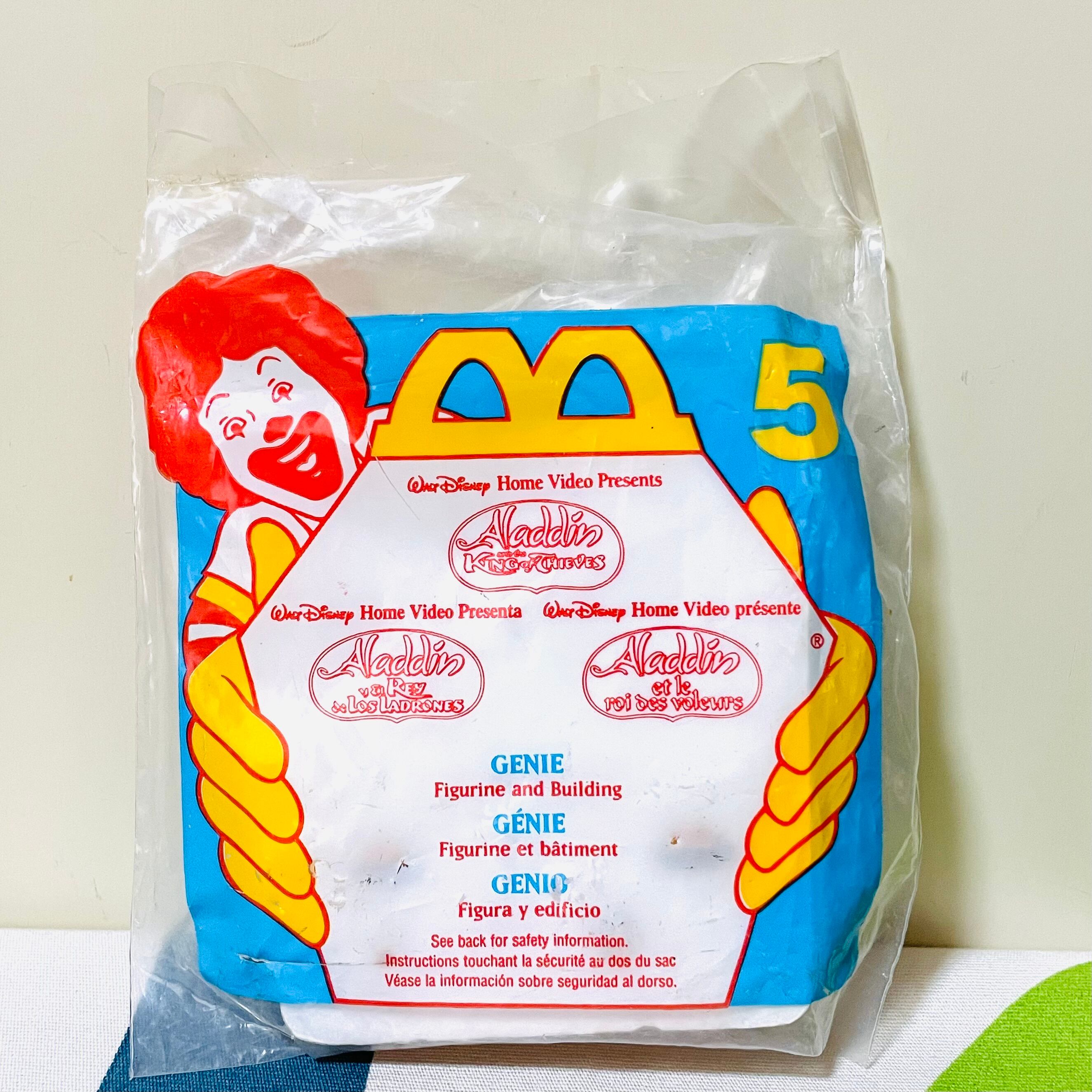 アメリカのマクドナルドのハッピーミールトイ、ウォルト・ディズニー・ホームビデオ・プレゼンツシリーズより、ALADDIN AND THE KING OF THIEVESのジーニーのフィギュア。