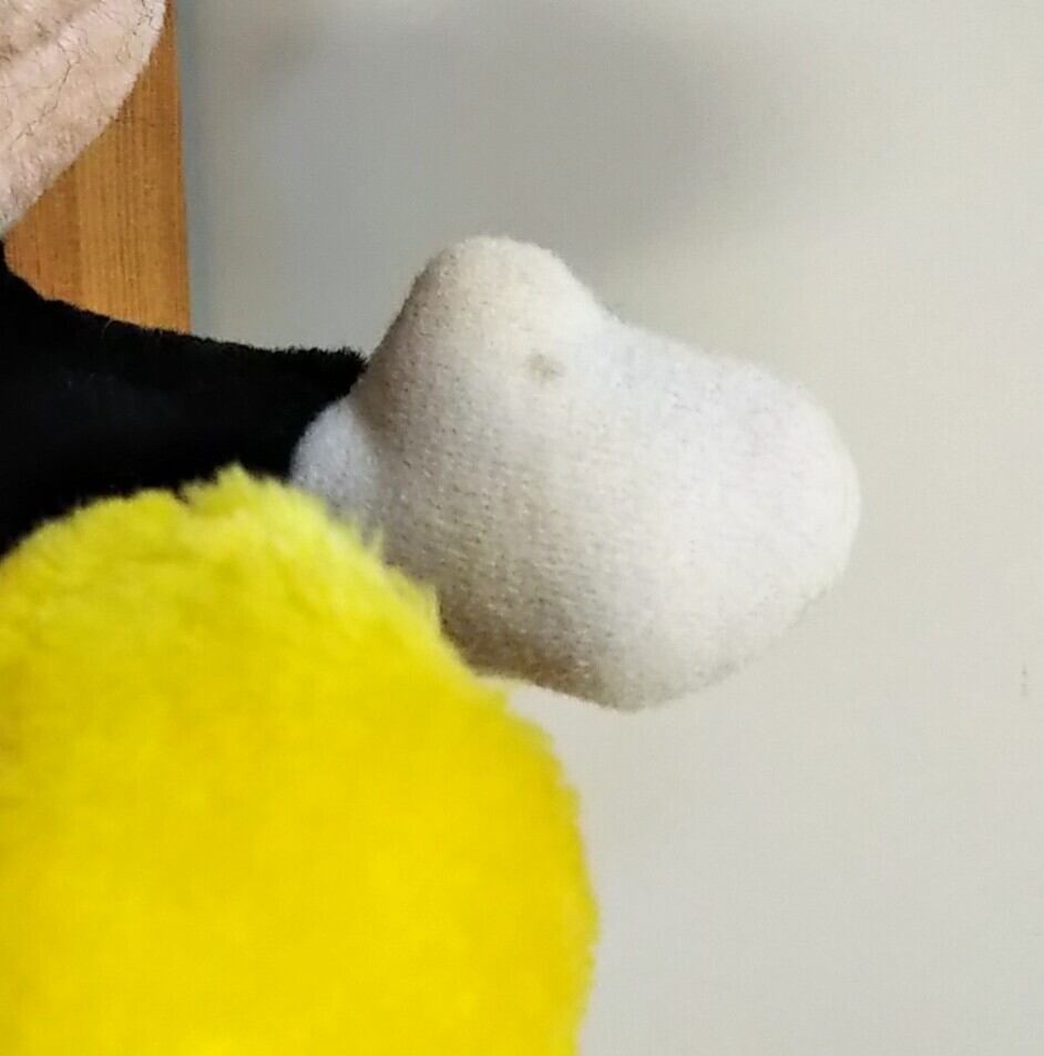目はプラスチック製で、左の黒目部分が少しペイントロスしています。