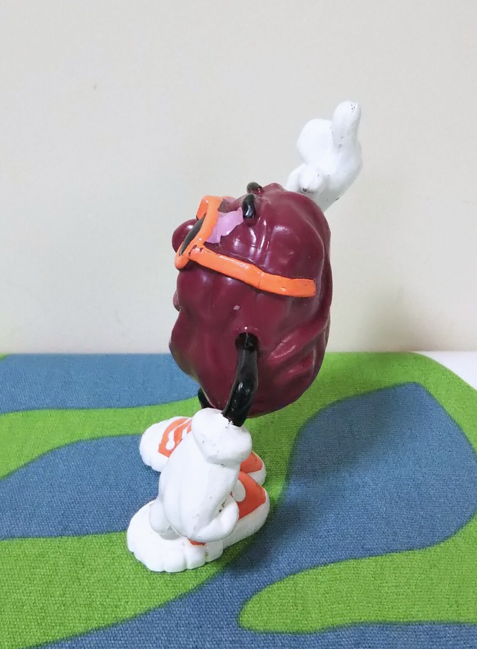 オレンジのサングラスとスニーカーで踊る、カリフォルニア・レーズンのPVCフィギュア。