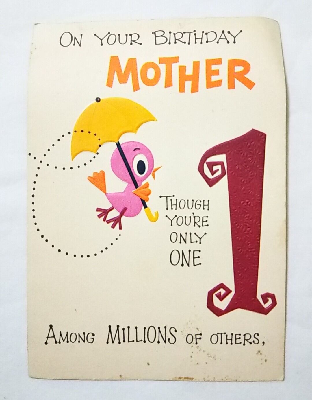 b-2 VINTAGE BIRTHDAY CARD 傘をさした小鳥 バースデイカード 1960-70年代 GREETING CARD グリーティングカード バースデーカード