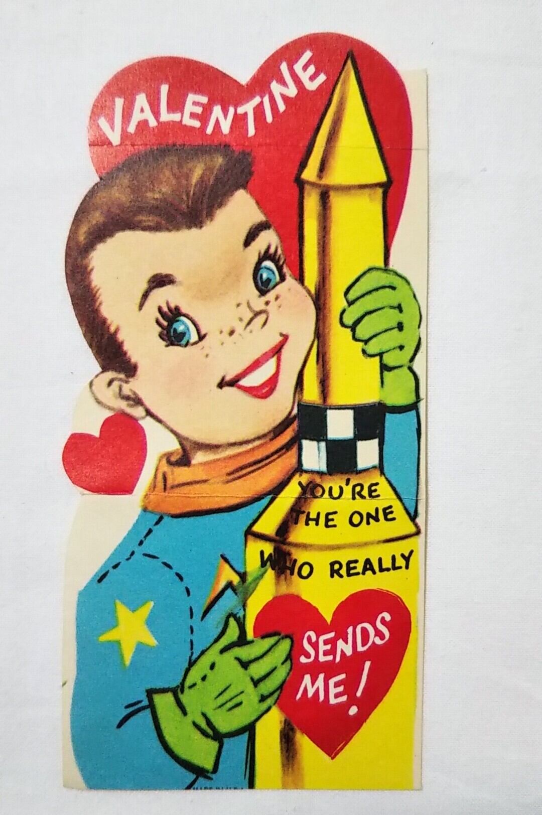 v-130 VINTAGE VALENTINE CARD ロケットを持つ男の子 バレンタインカード 1960年代 GREETING CARD グリーティングカード バレンタインデー ヴィンテージ