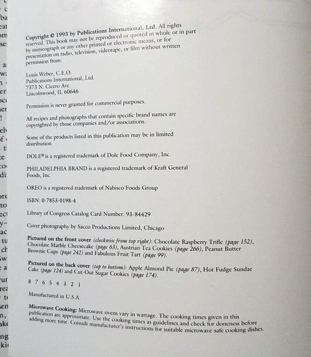 "TREASURY OF DESSERTS" COOK BOOK 洋書レシピ本 クックブック RECIPE BOOK 1993年 ヴィンテージ