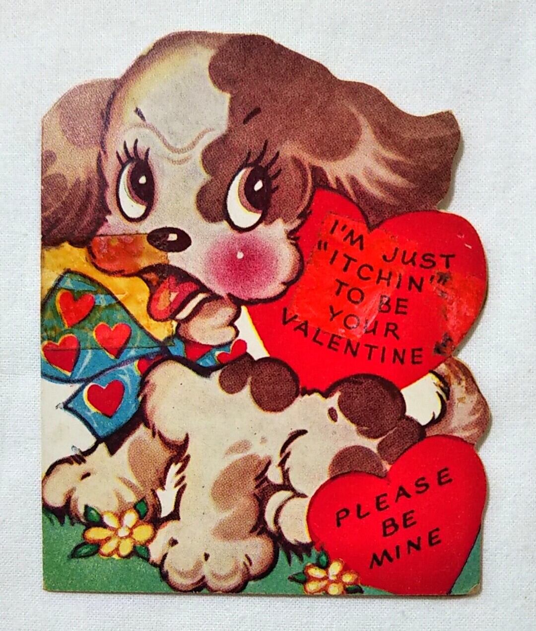 v-156 VINTAGE VALENTINE CARD ハート柄のリボンをした子犬 ワンコ バレンタインカード 1960年代 GREETING CARD グリーティングカード バレンタインデー ヴィンテージ