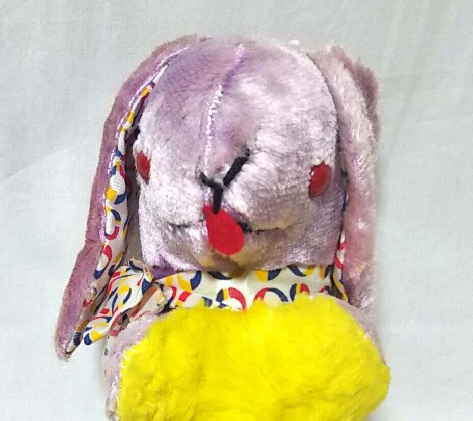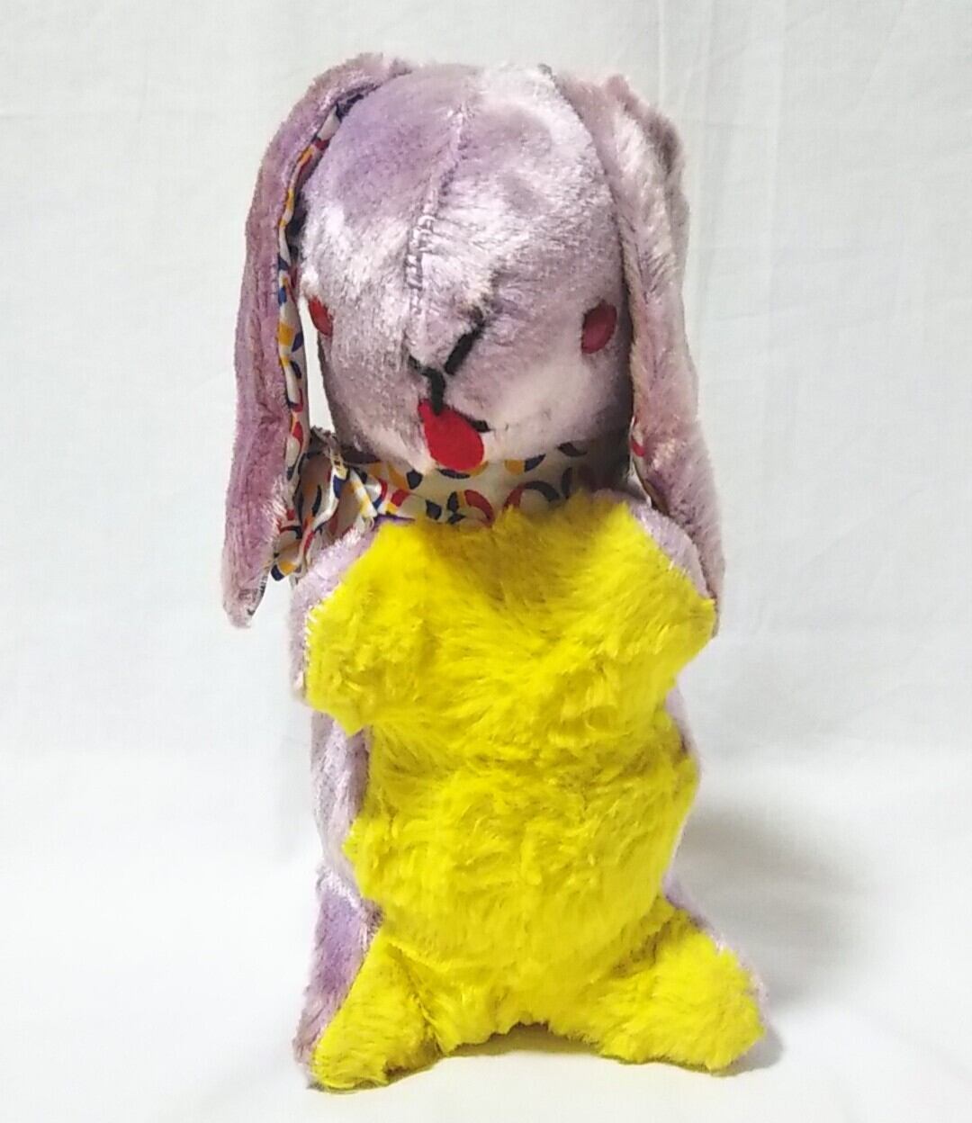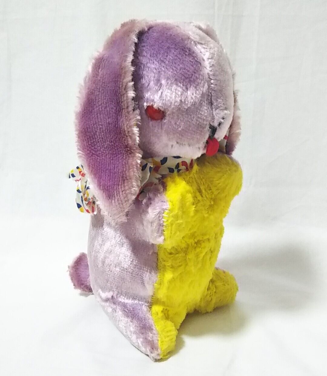 紫と黄色のウサギさん ぬいぐるみ ロップイヤー PURPLE × YELLOW STUFFED RABBIT 1970年代 うさぎ EASTER BUNNY PLUSH TOY ヴィンテージ