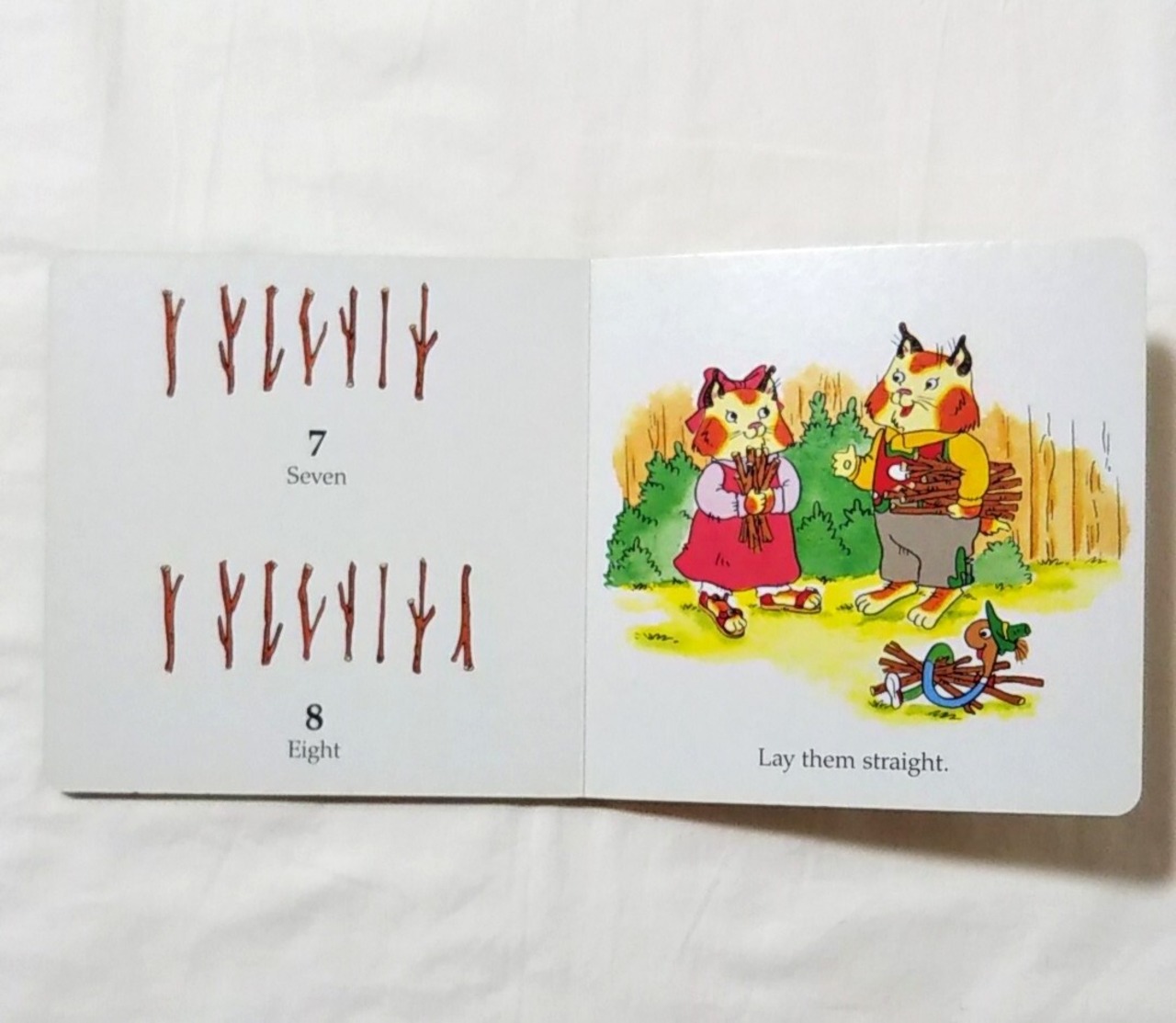 リチャード・スキャリー(リチャード・スカリー)のビジータウンシリーズの登場人物、ミミズのローリー、猫のハックルが、妹のサリーに数の数え方を教える絵本です。