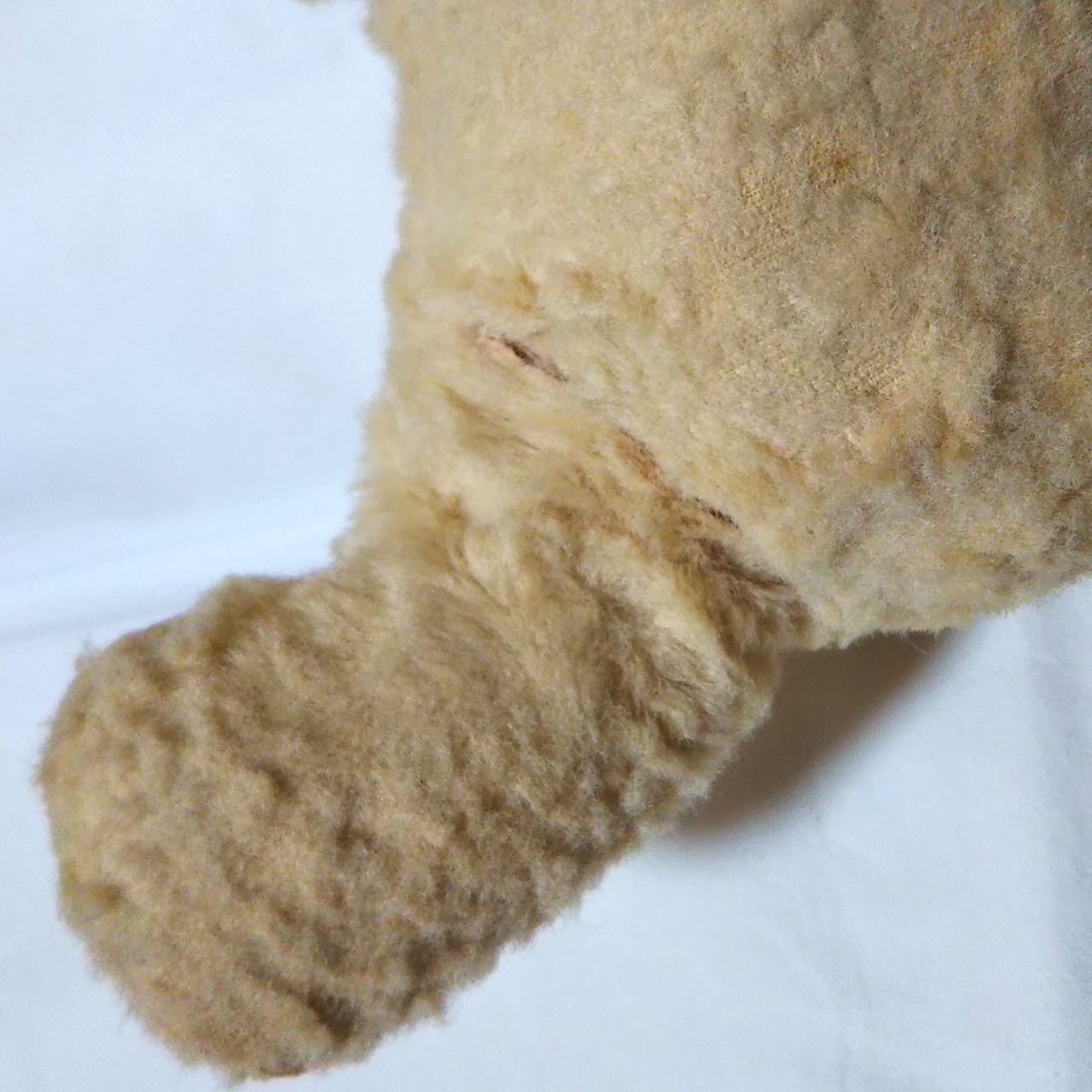 毛が潰れ、所々剥げがあります。