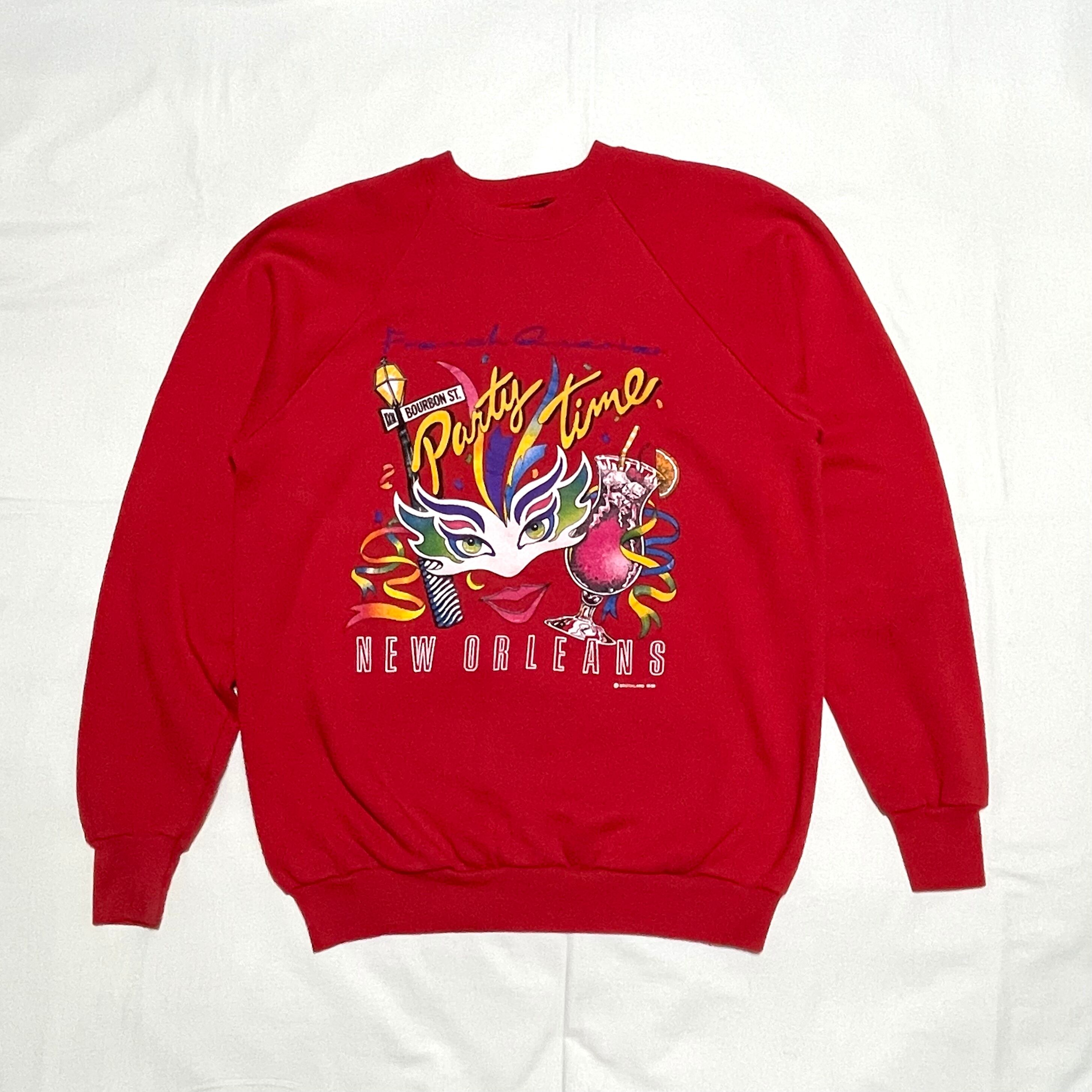 NEW ORLEANS 古着スウェット トレーナー FRENCH QUARTER PARTY TIME ニューオーリンズ 赤 XL ユーズド ヴィンテージ
