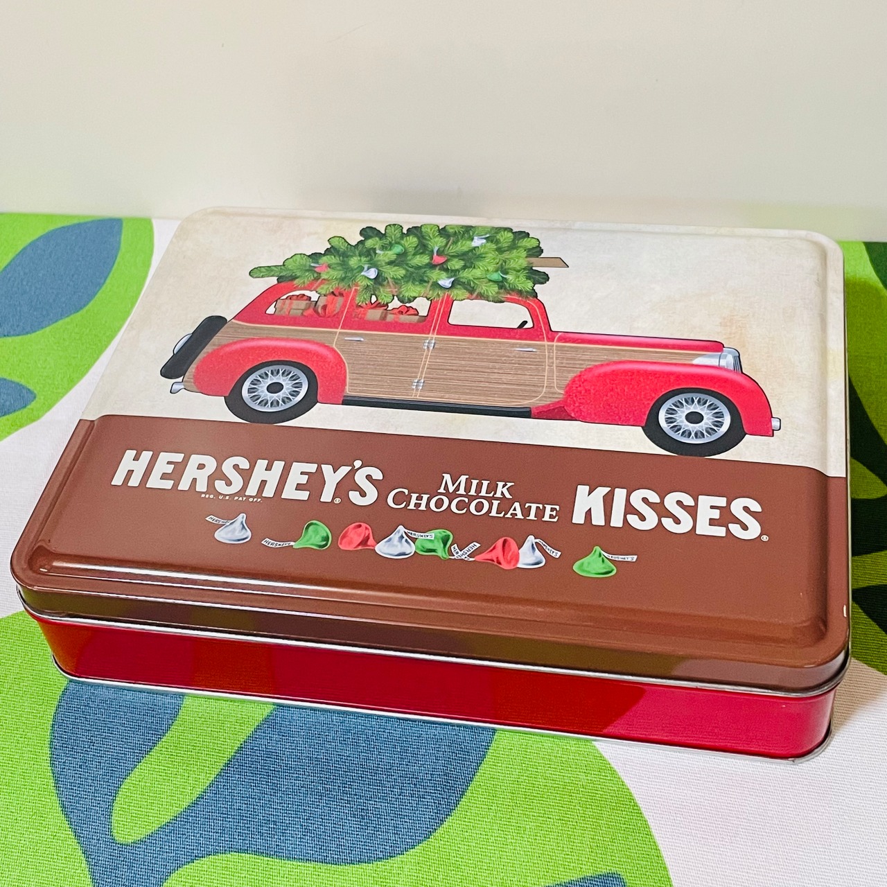 HERSHEY'S KISSES CHOCOLATE CHRISTMAS TIN ハーシーズ キスチョコ クリスマス限定 空き缶 ウッディワゴン チョコレート USアドバタイジング