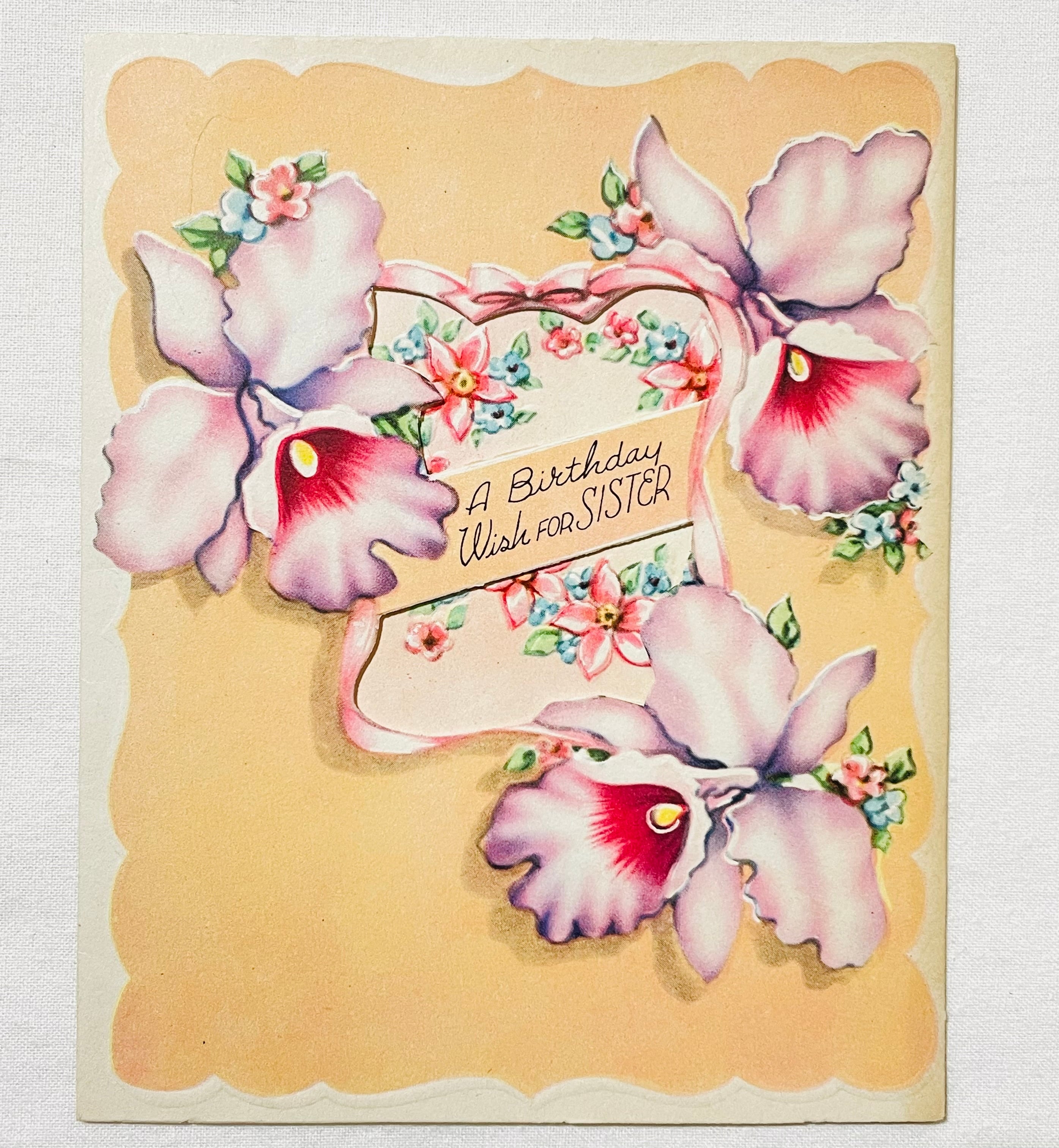 b-84② VINTAGE BIRTHDAY CARD カトレアの花 バースデイカード 1940年代 GREETING CARD グリーティングカード バースデーカード