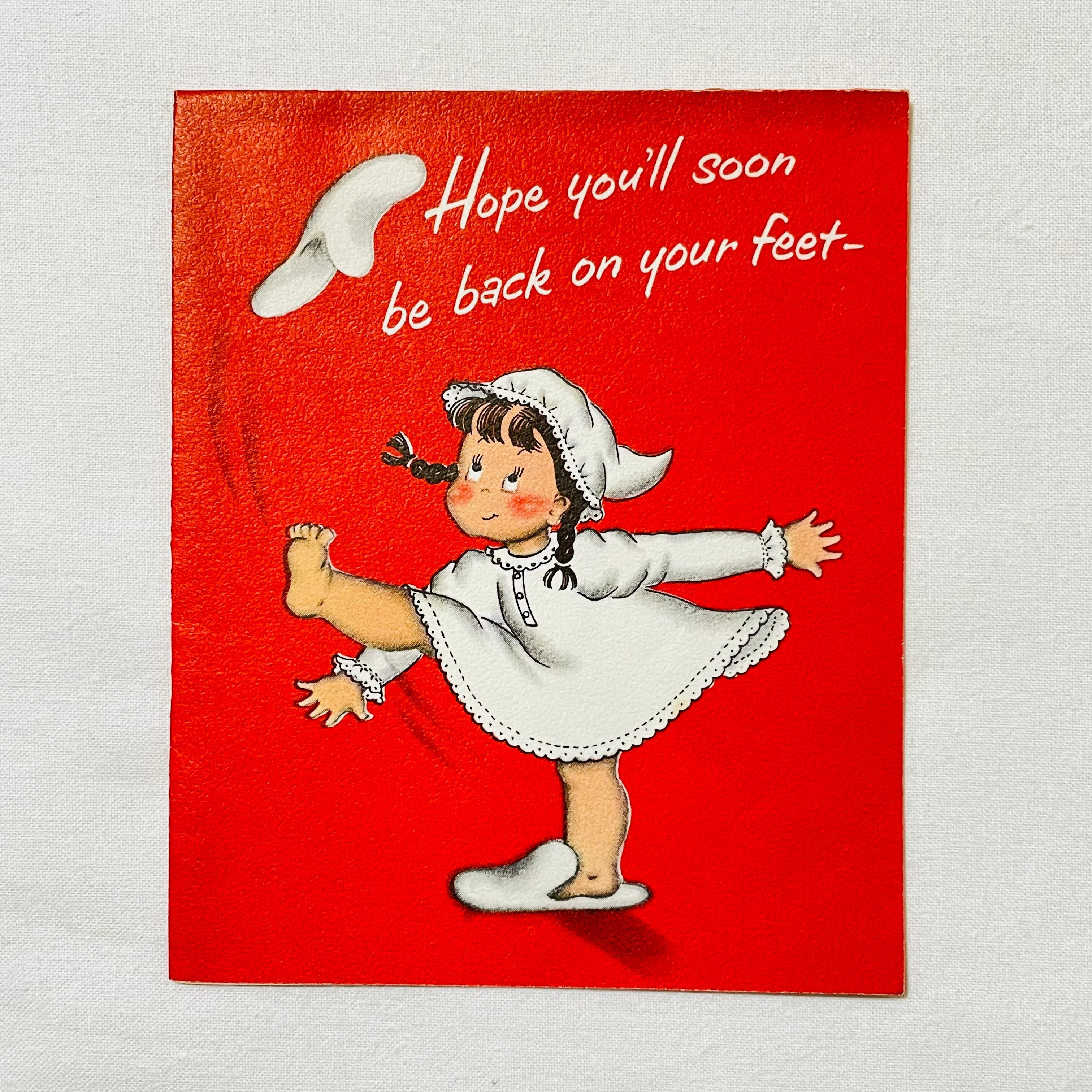 g-14 VINTAGE GET WELL CARD スリッパを蹴り上げる女の子 バラ ゲットウェルカード 1950年代 GREETING CARD グリーティングカード