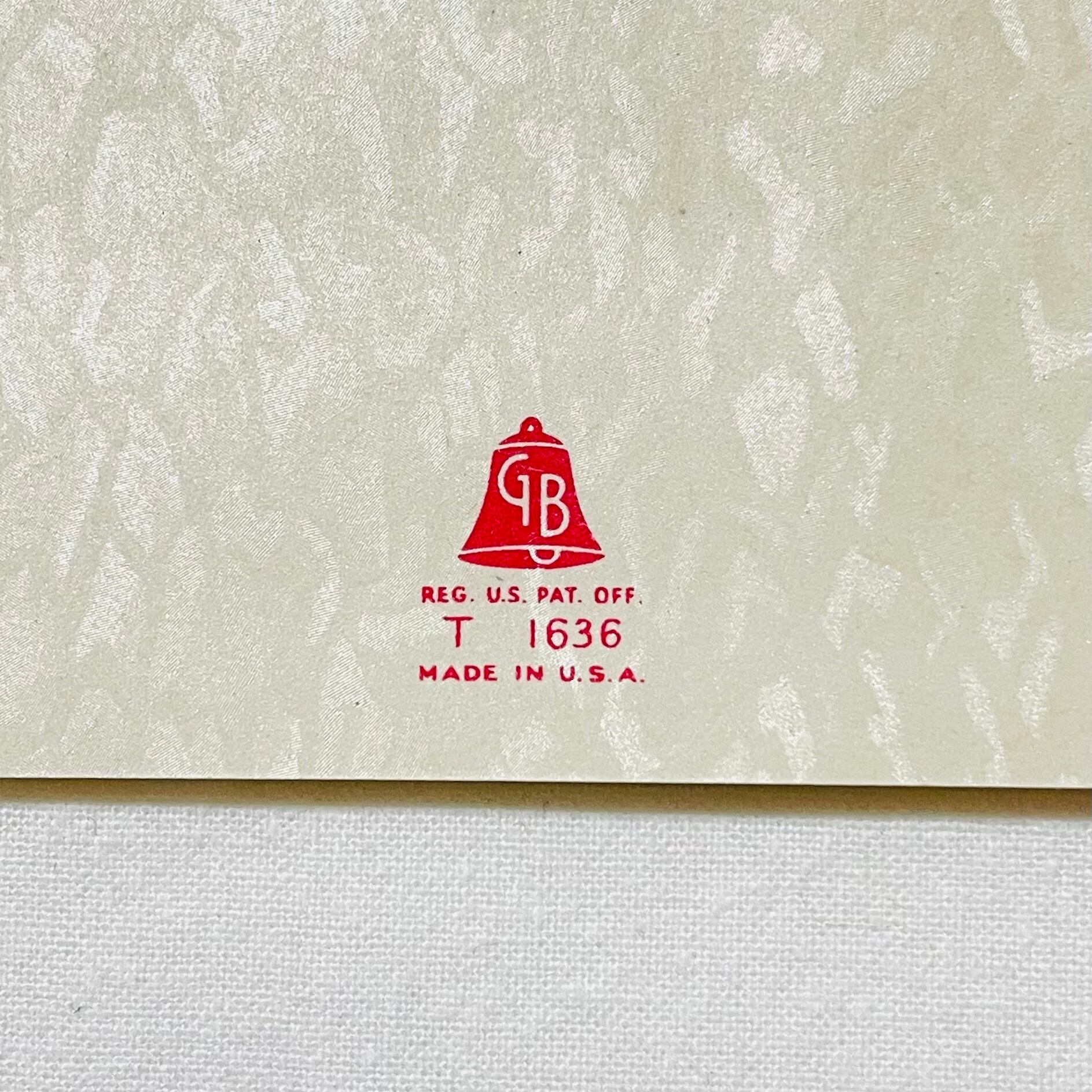 1940年代のグリーティングカードによくある、あまり厚手ではない紙の4つ折りのタイプですが、表紙裏が糊付けされていて展開出来ないようになっています。
