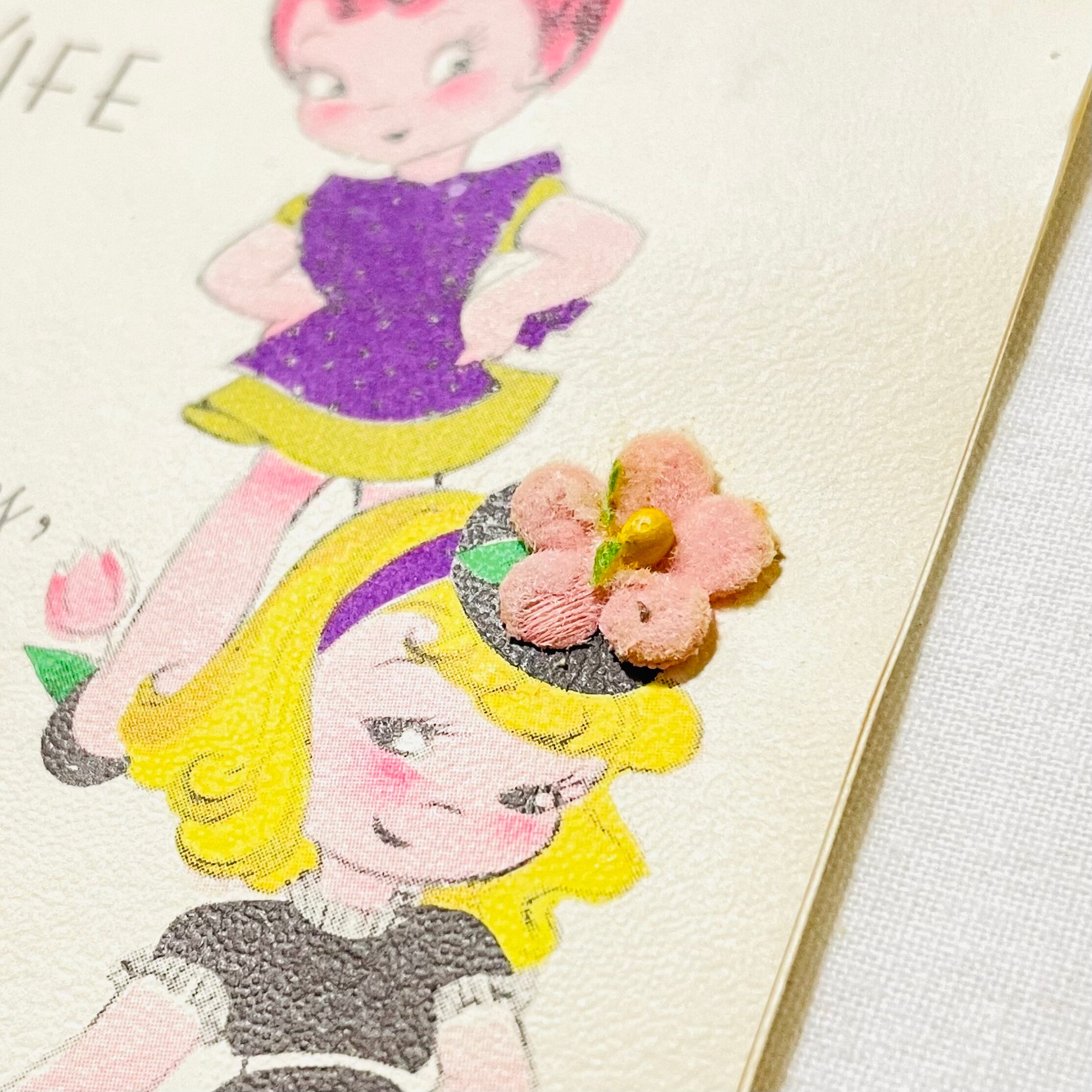 表紙にひとつフェルト製の小さな造花が貼られています。
