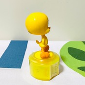 トゥイーティーのフィギュアの足元に、ロール状に巻かれている小さなシールのテープが入っています。